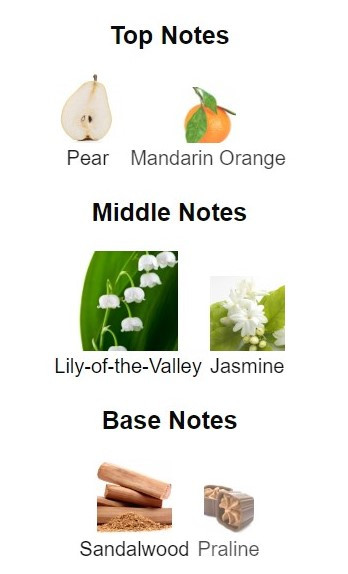 محصول سال 2017 می باشد و در گروه بویایی گلی میوه ای شیرین که عطرهای بسیار جذابی را در خود جای داده است، قرار دارد. سبک بویی این عطر گرم می باشد از اسانس های بکار برده شده در این عطر می توان به نارنگی ماندارین، گلابی ، یاس، گل برف ، چوب صندل سفید ، پرالین اشاره کرد.