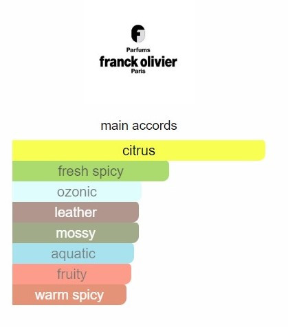 ادو تویلت فرانک بلو Franck Olivier یک ادو تویلت مردانه با رایحه چایپرمیوه ای می باشد و در سال 2017 ارائه شده است. باتوجه به رایحه های این ادو تویلت، بیشتر مناسب روزهای فصل بهار و تابستان است.